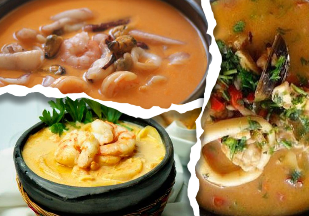 Se trata de una especialidad de la hermosa costa caribeña y pacifica de Colombia, aunque este plato es muy probablemente de origen español. Proviene del noreste del país, Cataluña, donde los mariscos frescos son abundantes y populares. Aunque existen diversas preparaciones de cazuela de mariscos a nivel mundial, la nuestra representa la región Pacífica con todas sus riquezas, el sabor de su gente y la tradición ancestral. Entre sus ingredientes de mariscos, se destaca el exótico sabor de la piangua que le da un toque especial, así como nuestro sofrito el cual hacemos con cebolla, ají dulce y las tradicionales yerbas de azotea del Pacífico, así como la leche de coco, que es la que le da el aspecto cremoso al caldo y el toque diferente de la región al plato.